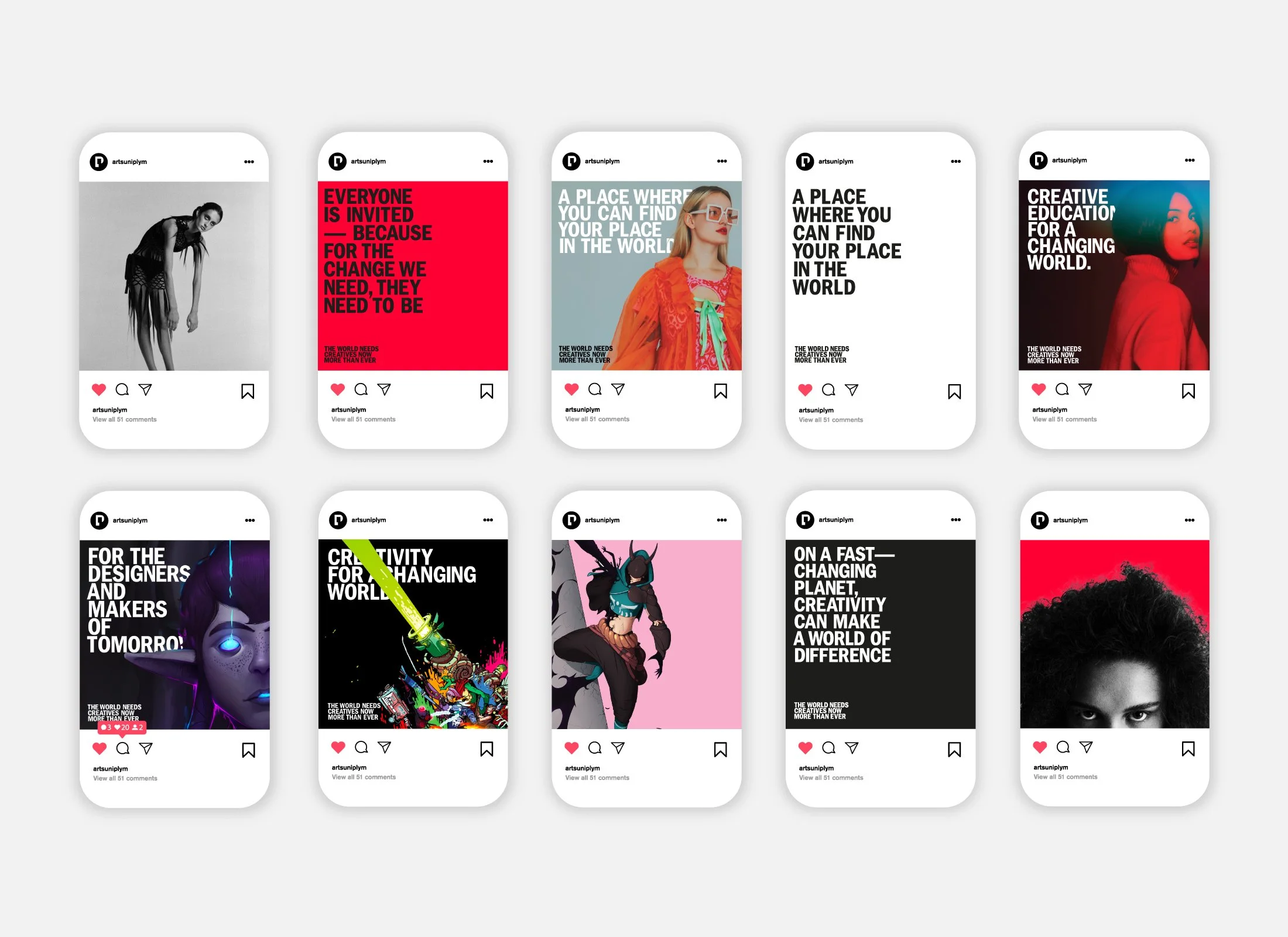 Tone was confident, optimistic and clear, avoiding academic distance in favour of direct, human language. Visually, the campaign balanced clarity with expression, allowing ideas to lead while giving space for student work, voices and ambition to remain front and centre.