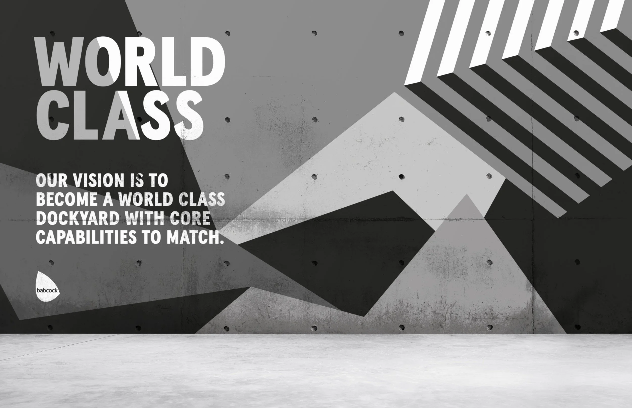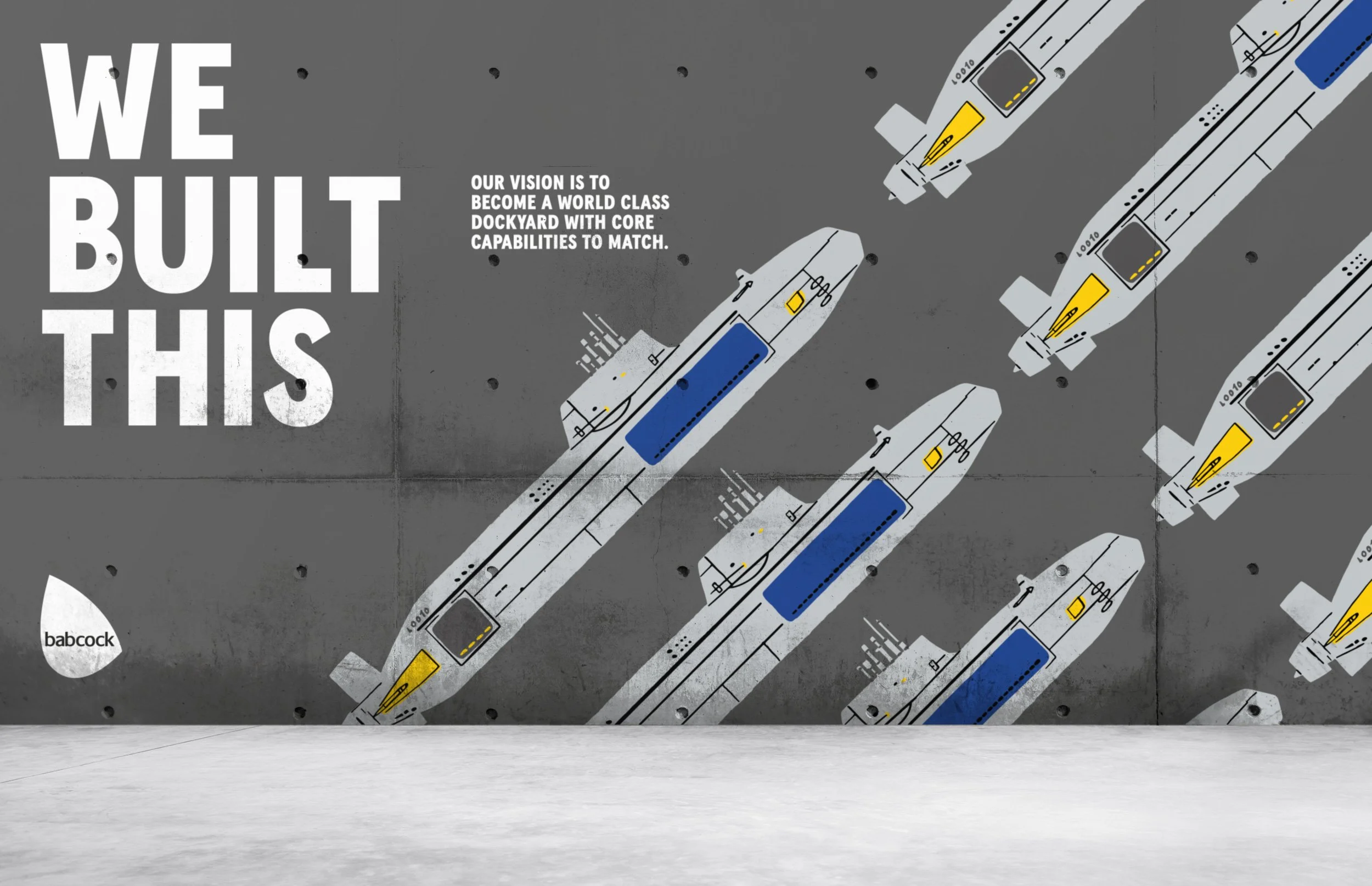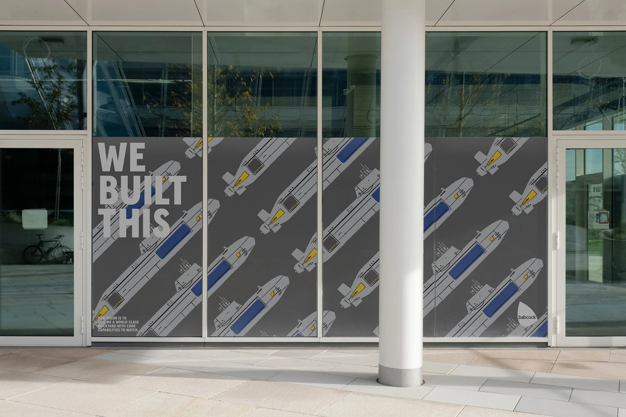 To support consistency without prescription, we created the Babcock Creative Catalogue — a practical design bible that allowed managers and teams across the dockyard to select the level and style of creative intervention most appropriate to their space. Options ranged from typographic statements and graphic language to illustrative or more restrained, corporate-led approaches.