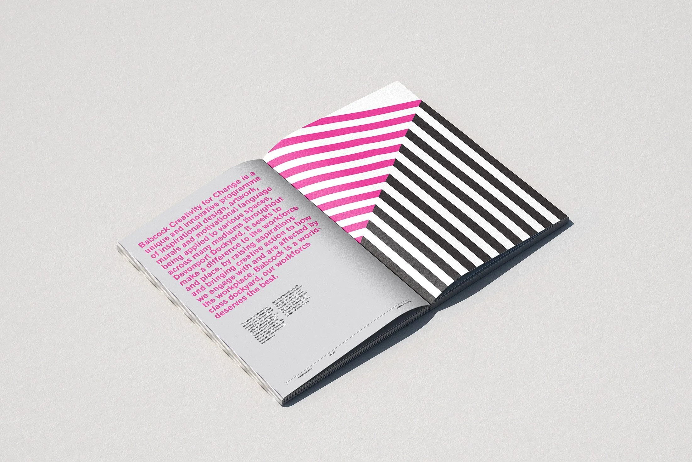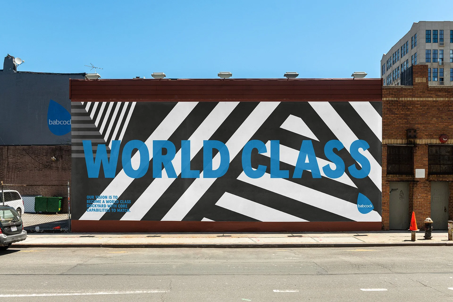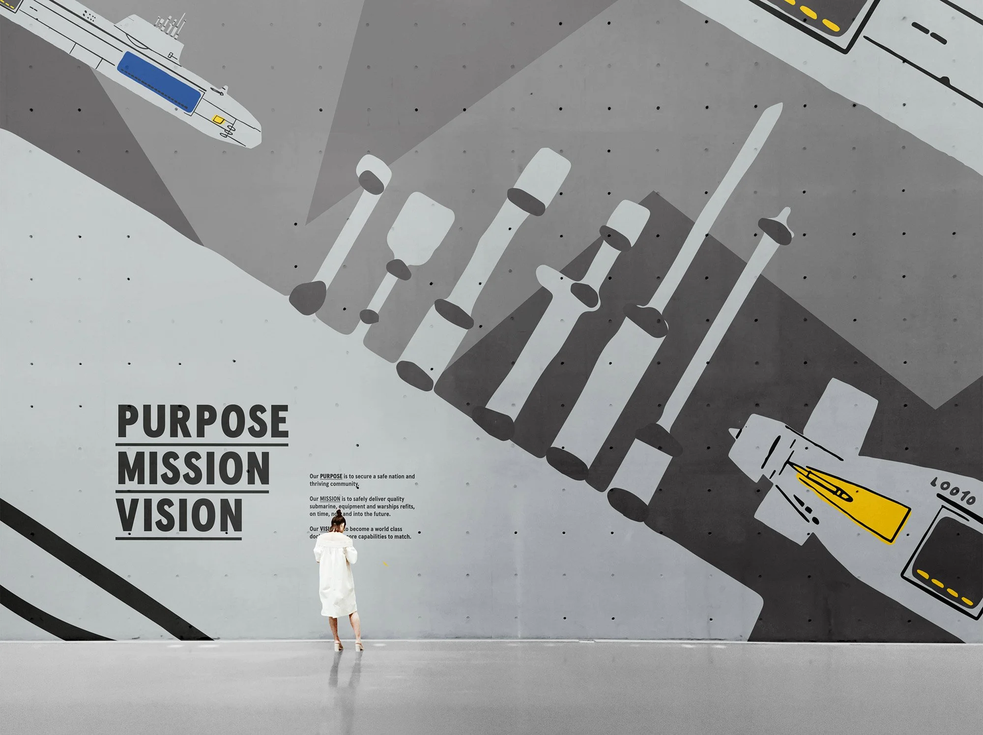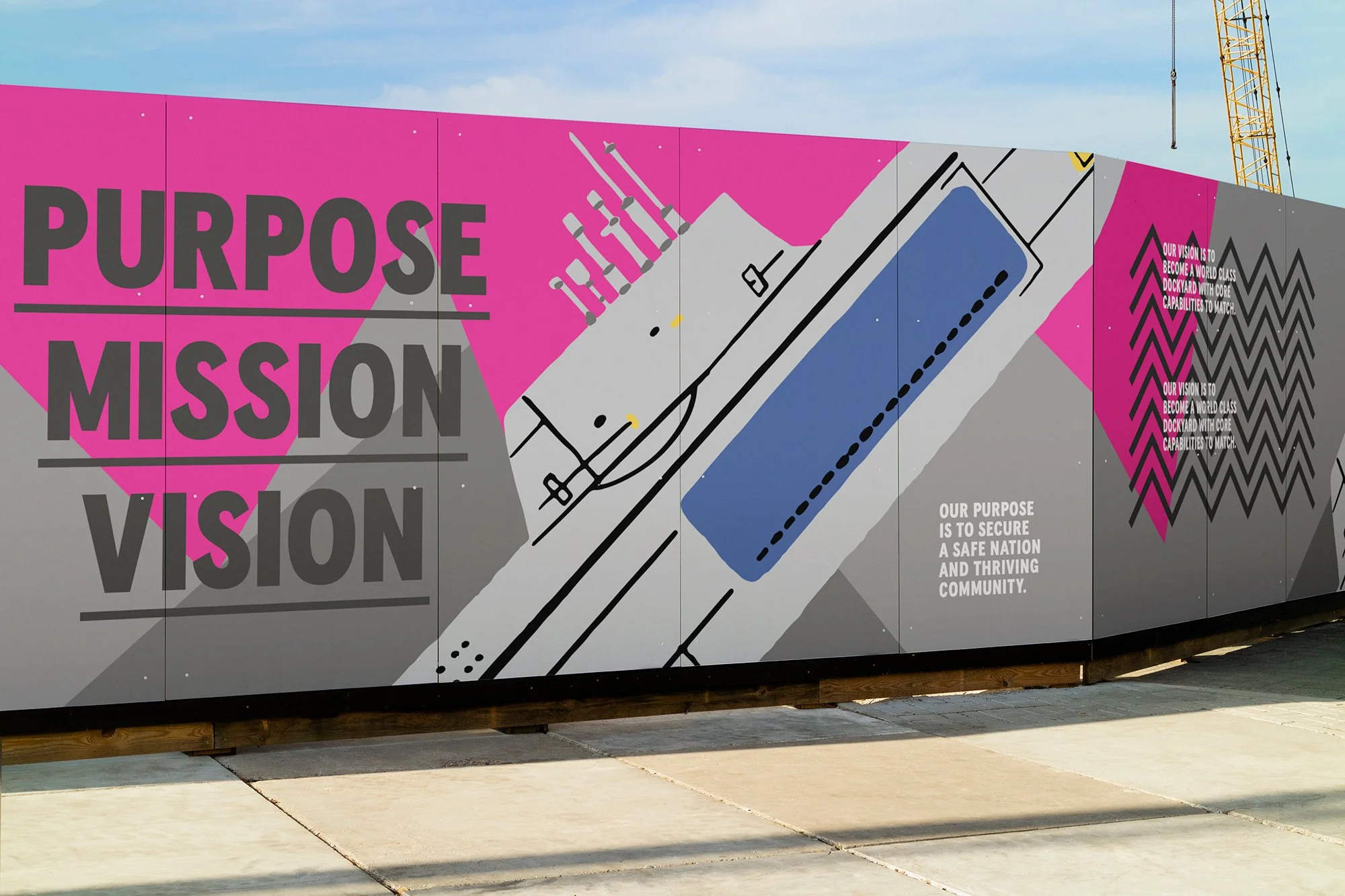 To support consistency without prescription, we created the Babcock Creative Catalogue — a practical design bible that allowed managers and teams across the dockyard to select the level and style of creative intervention most appropriate to their space. Options ranged from typographic statements and graphic language to illustrative or more restrained, corporate-led approaches.
