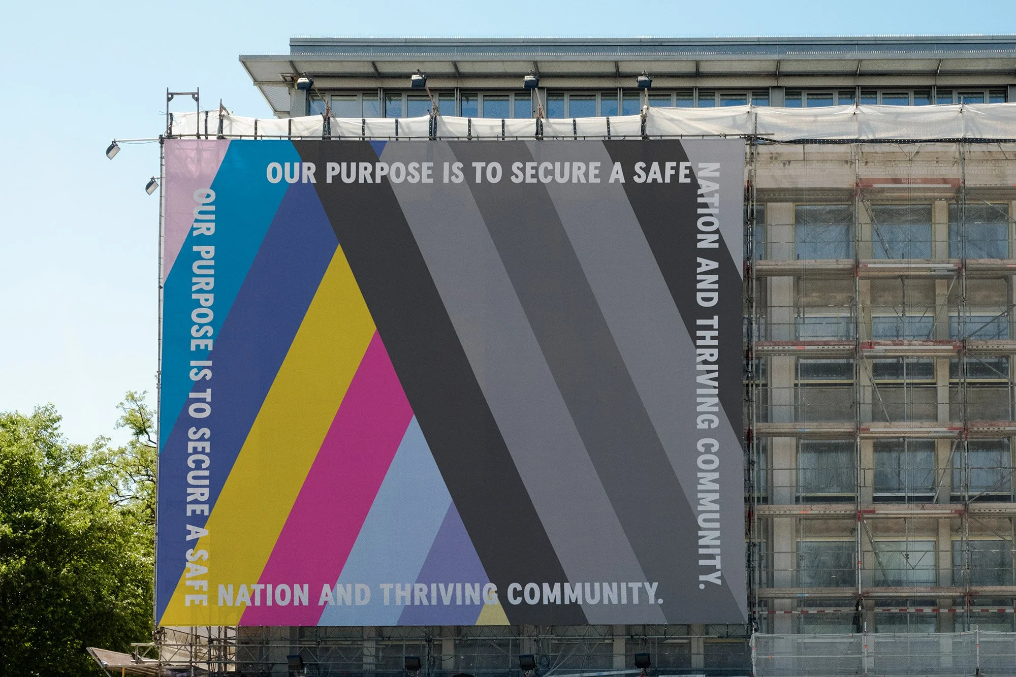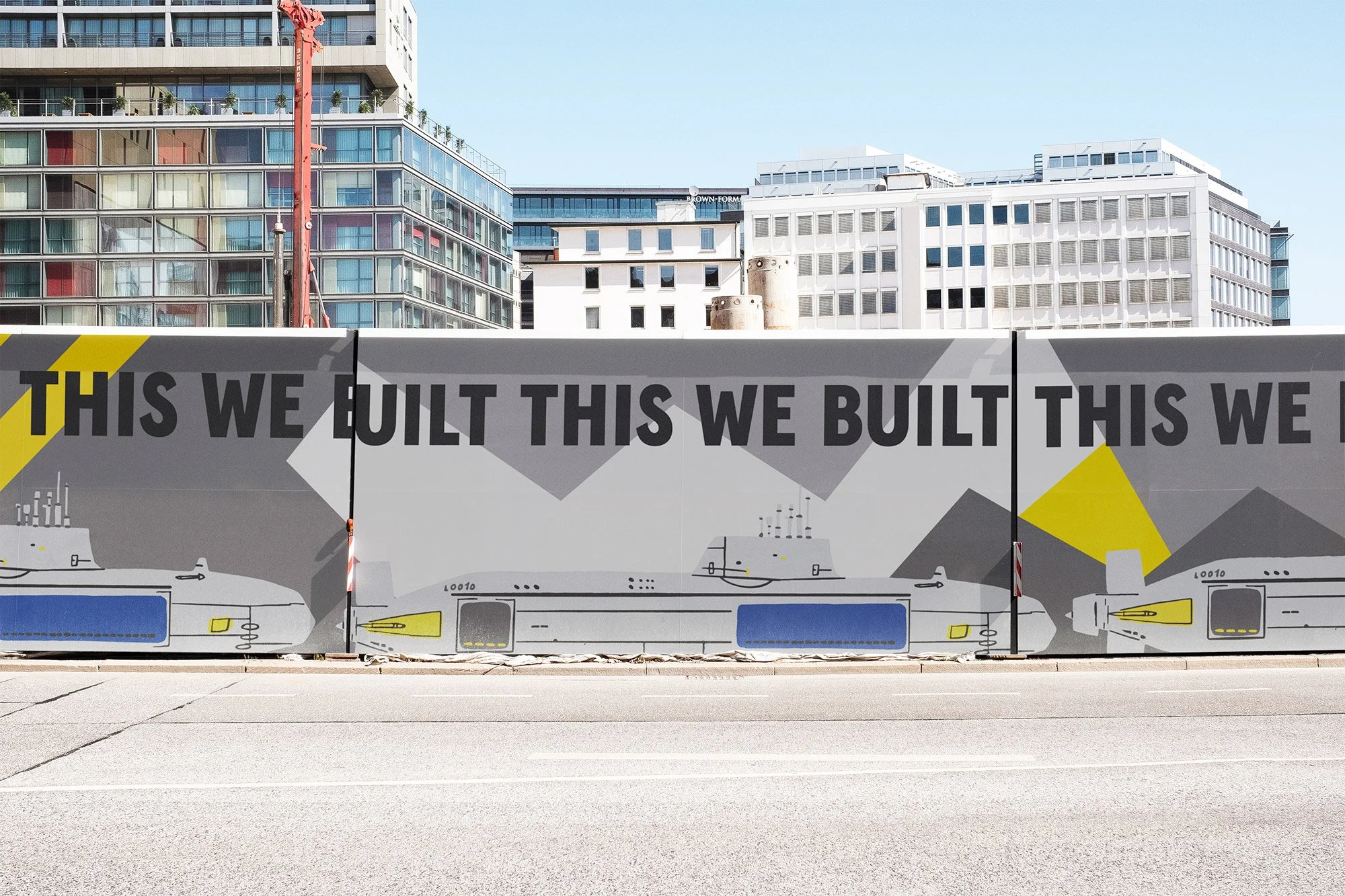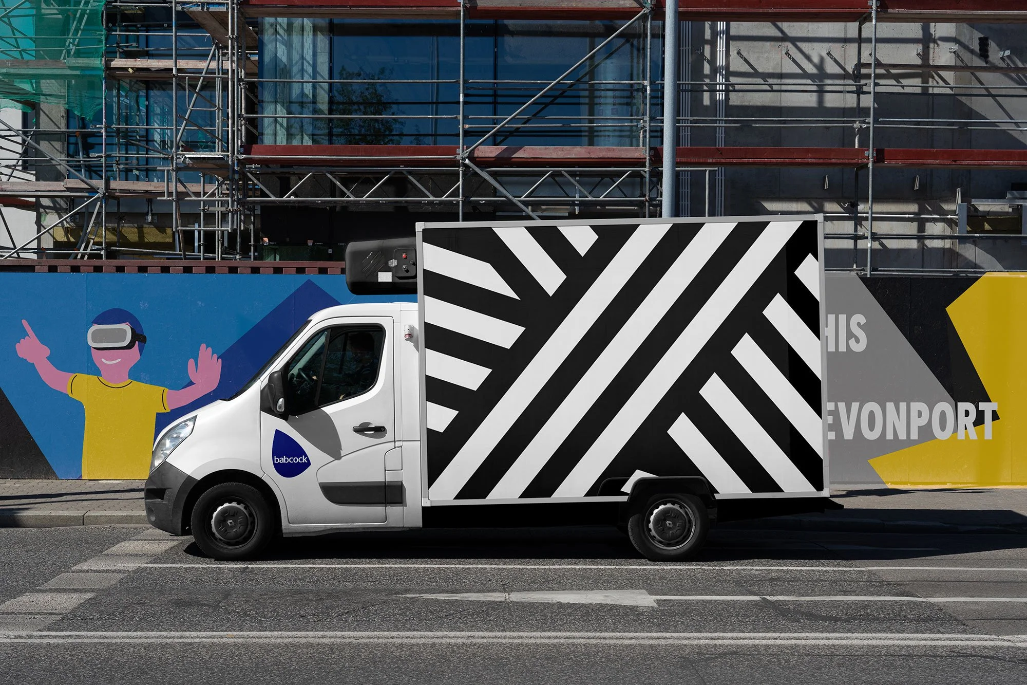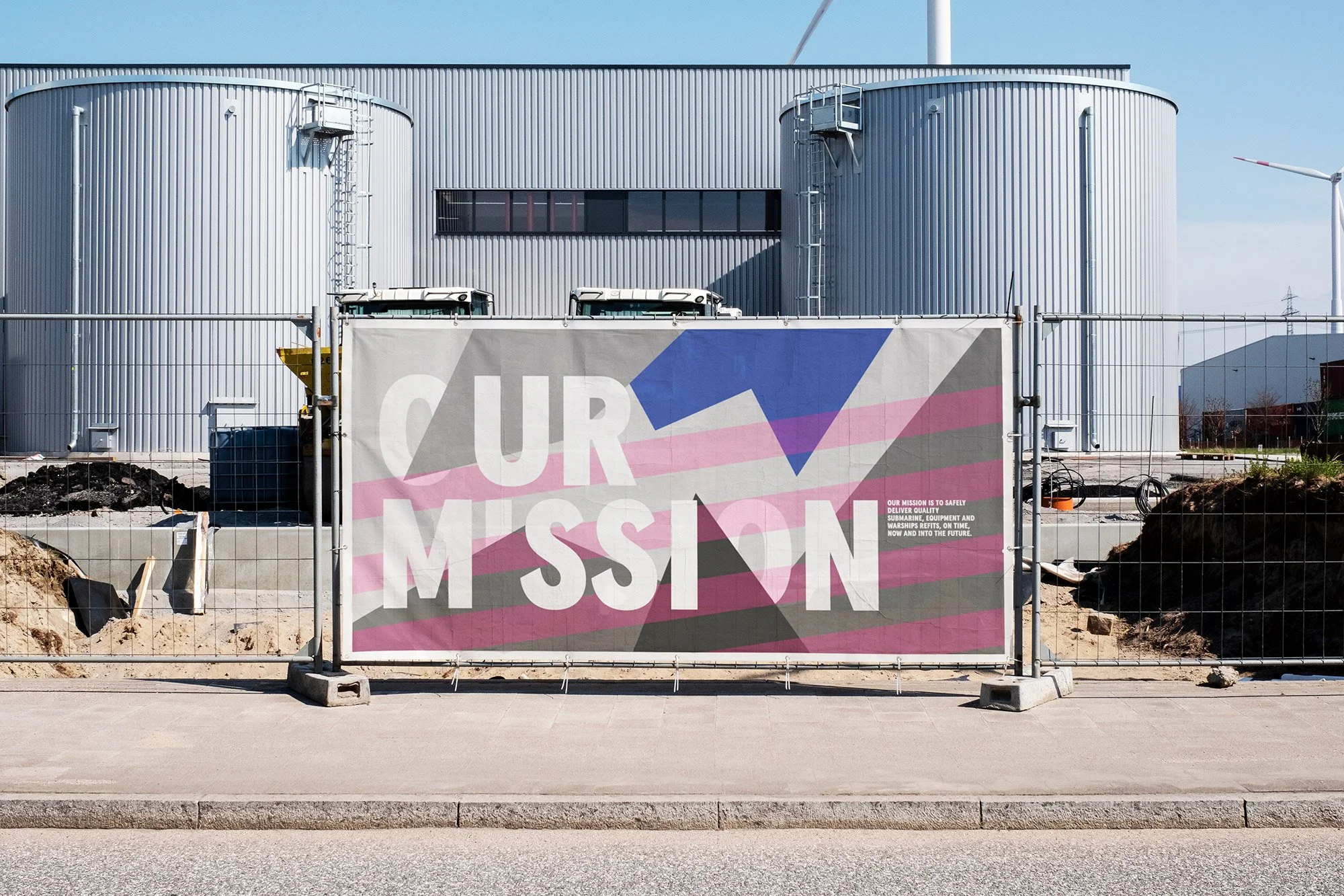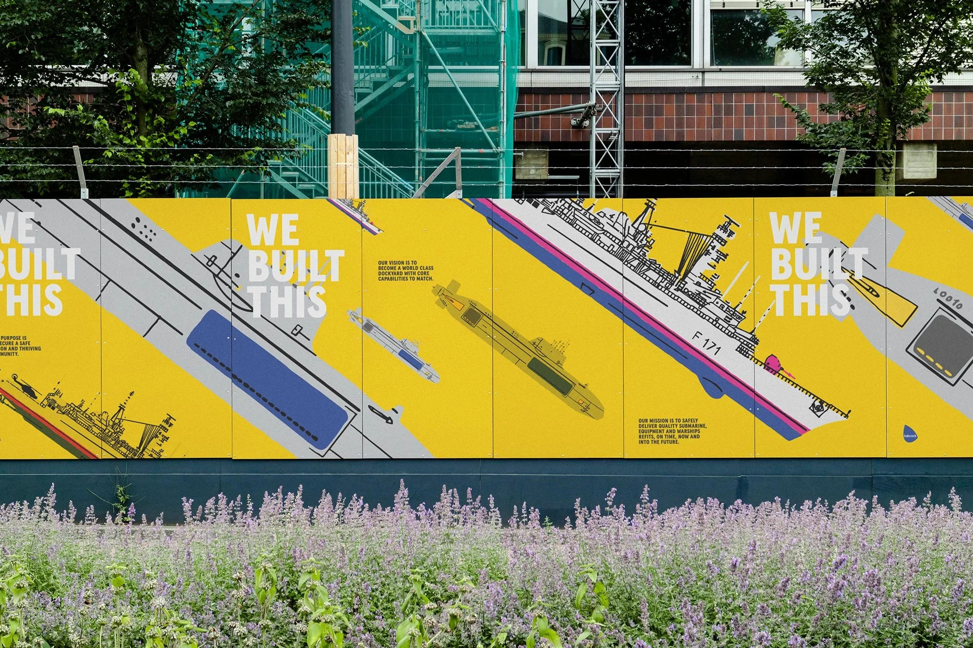 The visual language drew inspiration from dazzle camouflage — a bold, graphic approach originally used on naval ships to disrupt perception through pattern and contrast. Reinterpreted through a contemporary lens, the aesthetic was developed using Babcock’s colour palette and a suite of bespoke illustrations created with Neasden Control Centre, resulting in a highly adaptable graphic style.