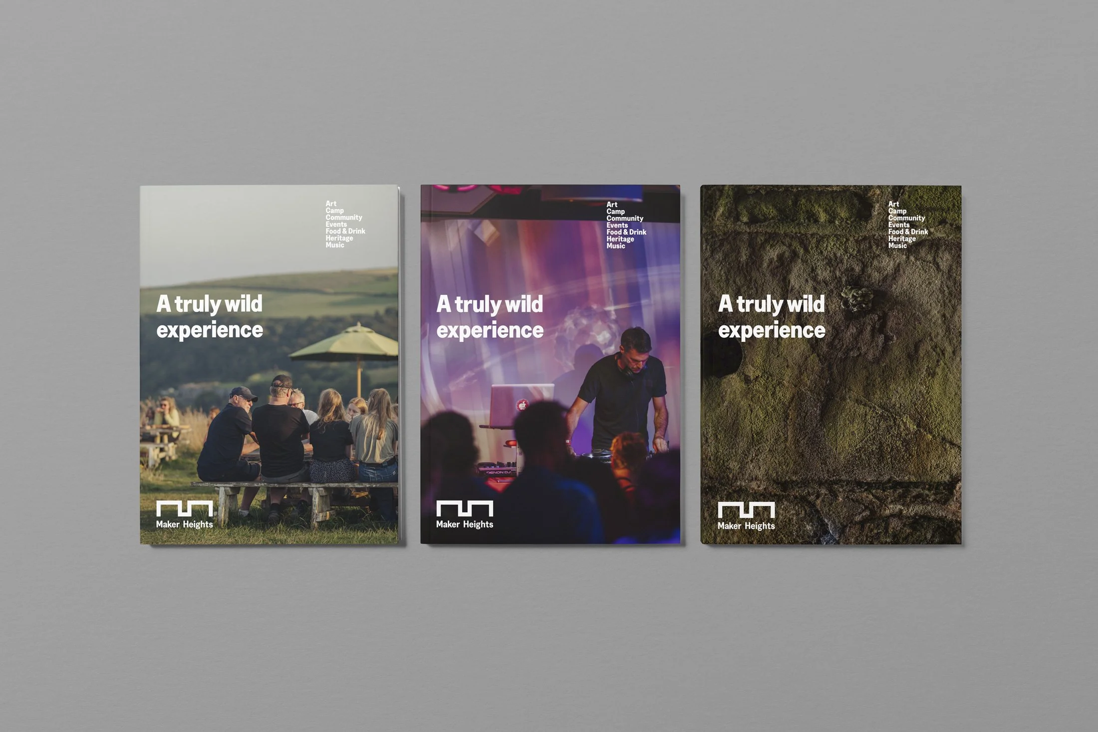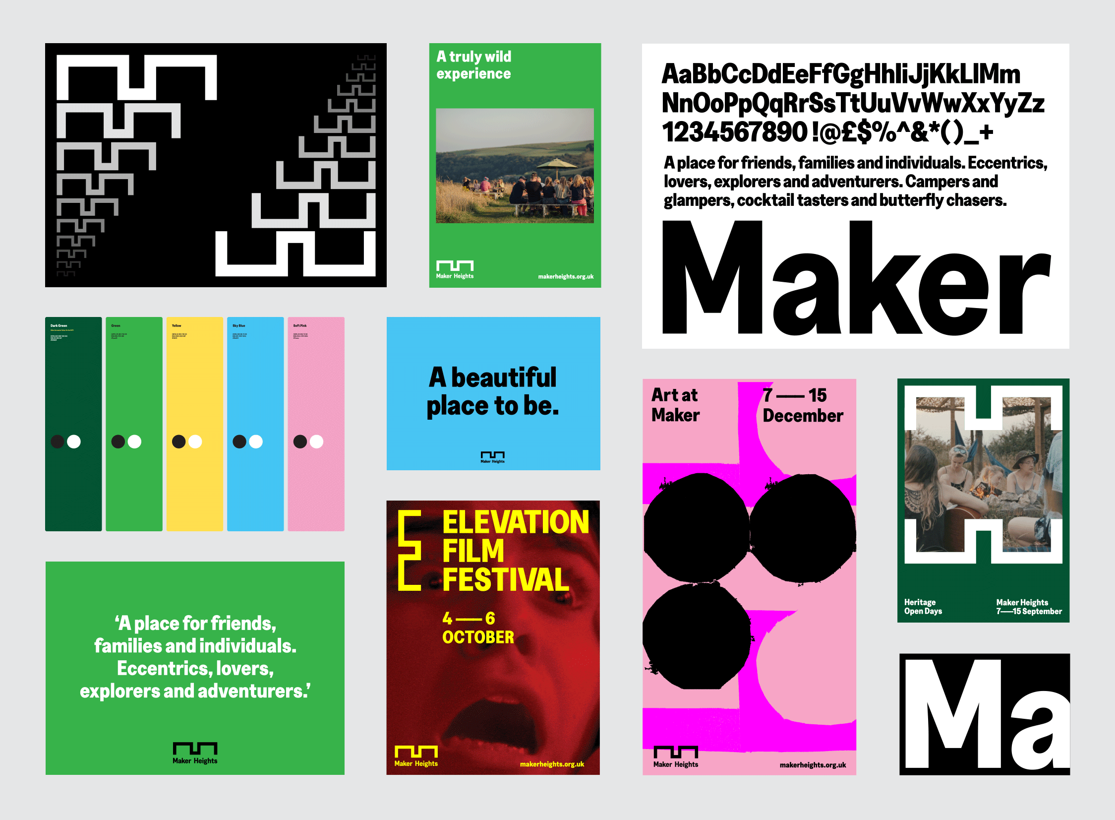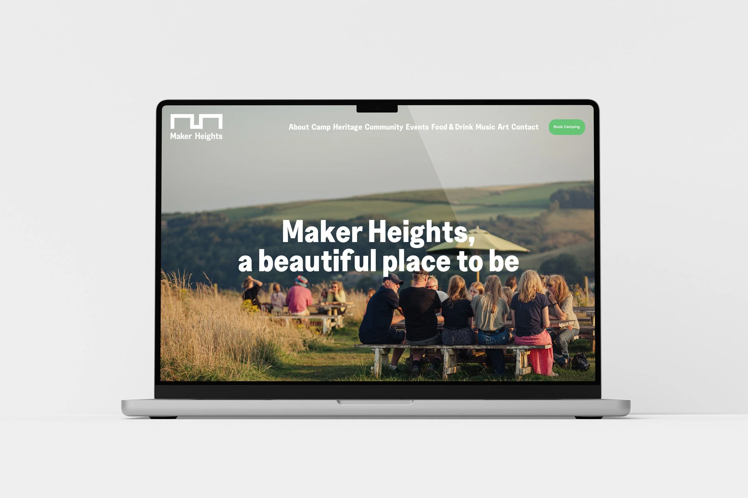 Alongside the identity, we designed and developed a website that reflects the spirit of the place while providing a clear and accessible gateway for visitors, artists and collaborators. The platform brings together information about the studios, events, campsite and wider community, helping people understand not just what Maker Heights is, but how it feels to spend time there.