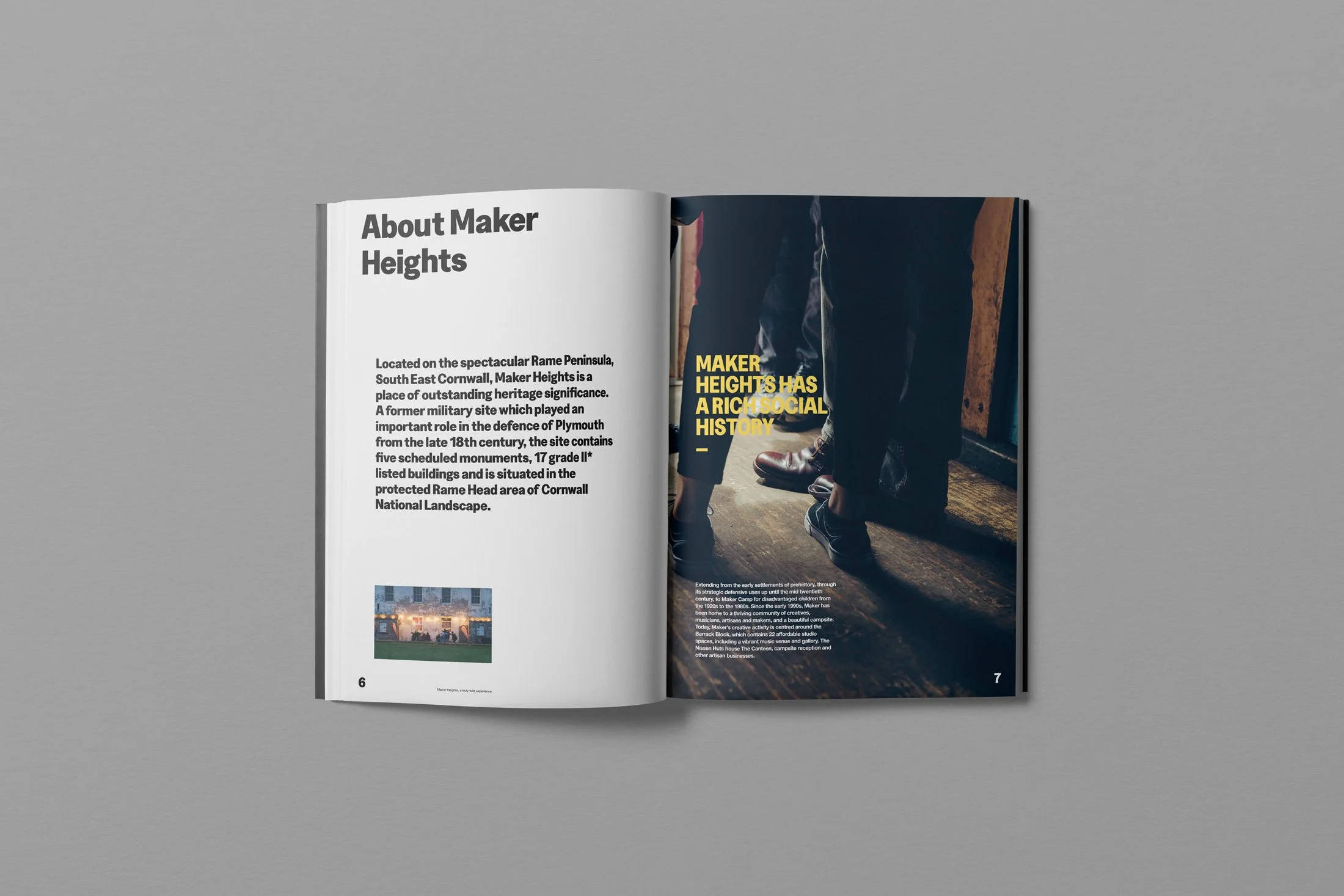 Set on the Rame Peninsula in South East Cornwall, Maker Heights is where landscape, history and creativity meet. Centred around the Barrack Block’s studios, gallery and music venue — with the surrounding Nissen Huts home to The Canteen, campsite reception and independent makers — our role was to create a unified identity and digital presence that reflects this vibrant ecosystem while preserving the individuality of the people and spaces that define it.
