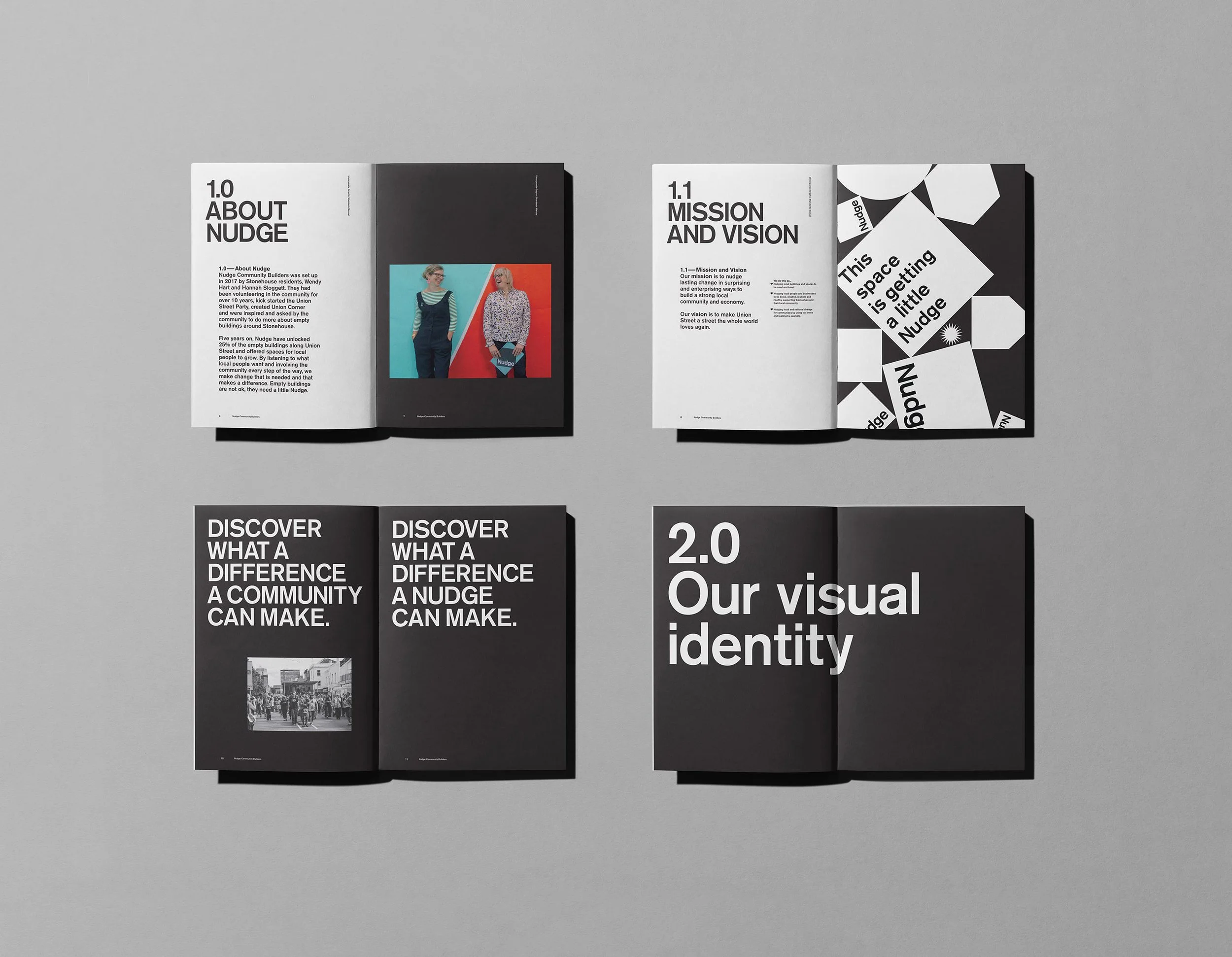 We’ve been working with Nudge Community Builders for over 16 years — from the very beginning of the organisation through to where it is today. We created the original Nudge identity — a simple, direct marque that has become synonymous with the organisation and its presence across the city. Something recognisable, unpretentious and grounded — much like the work itself.