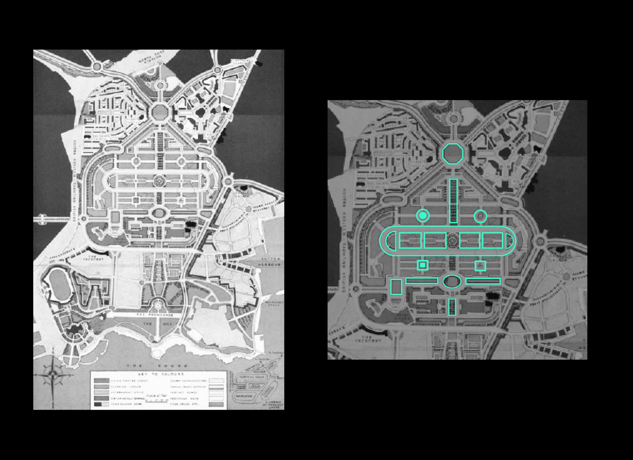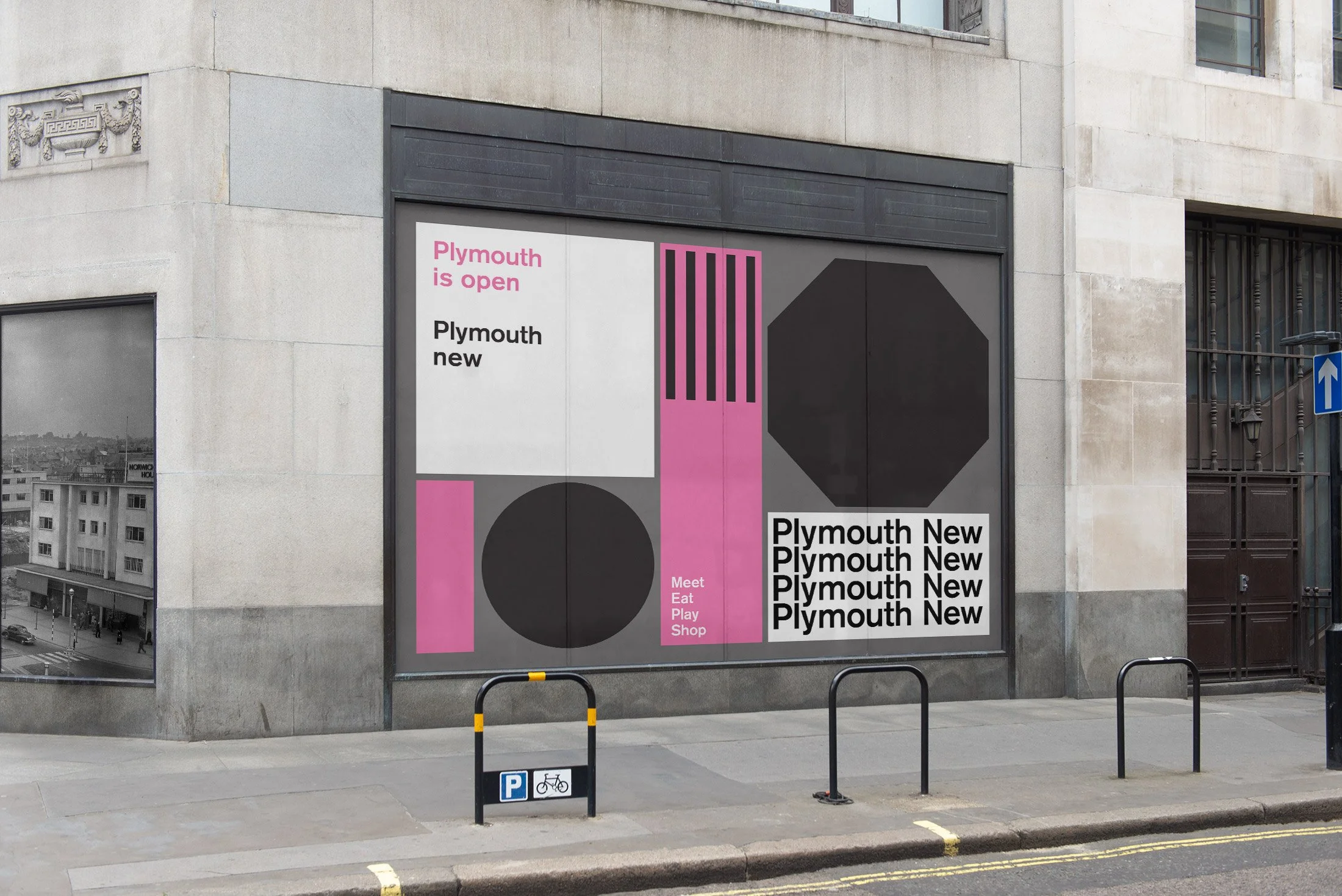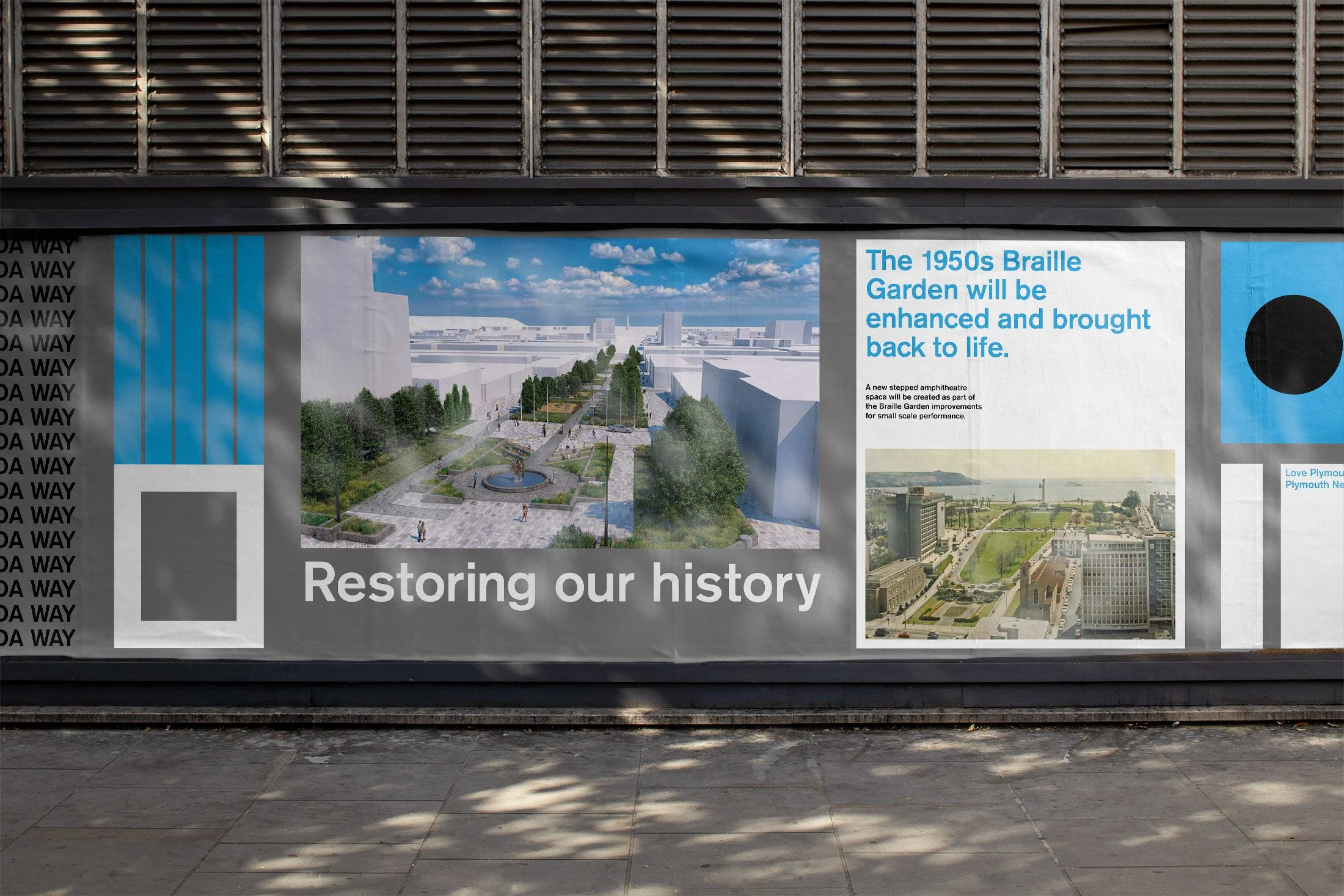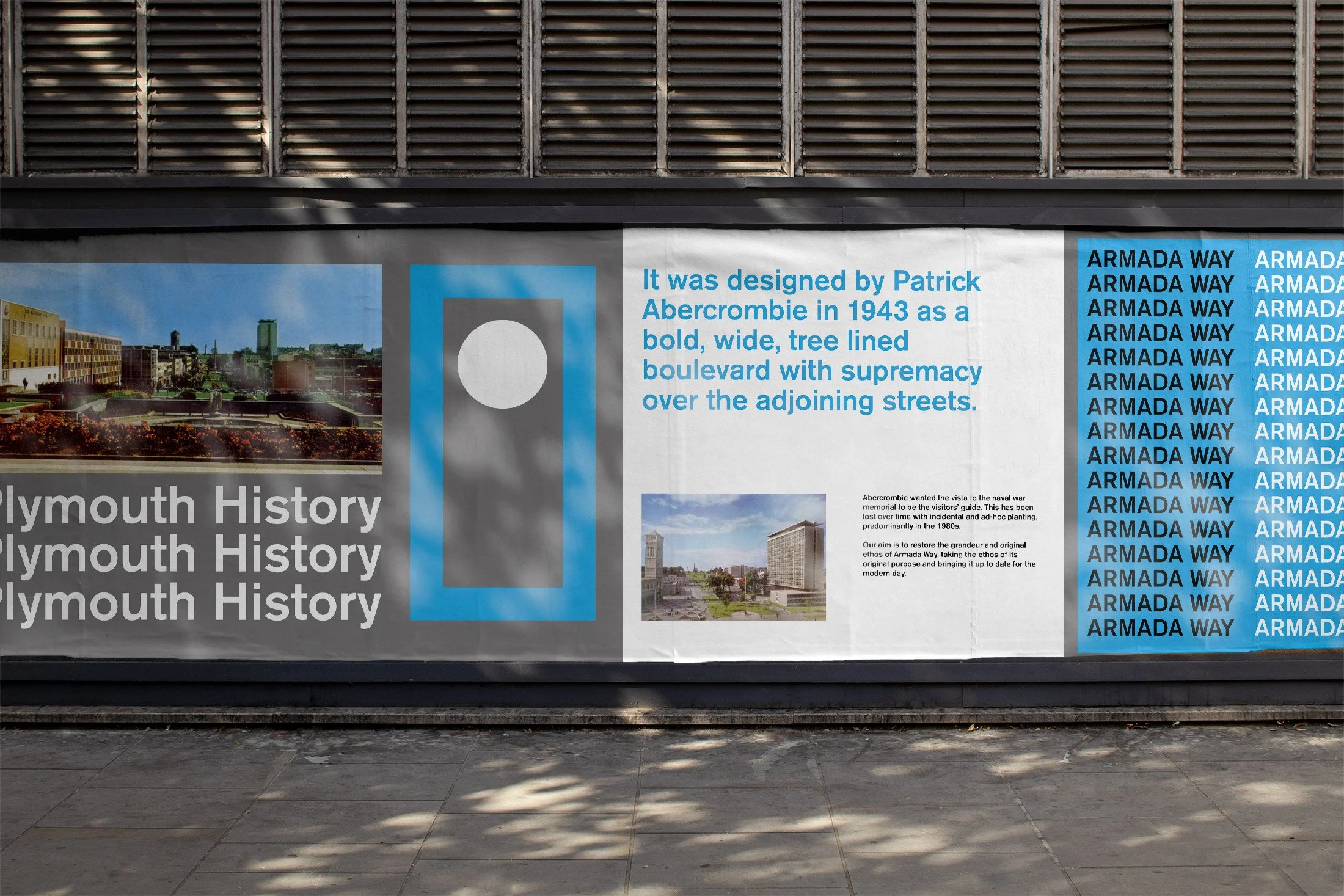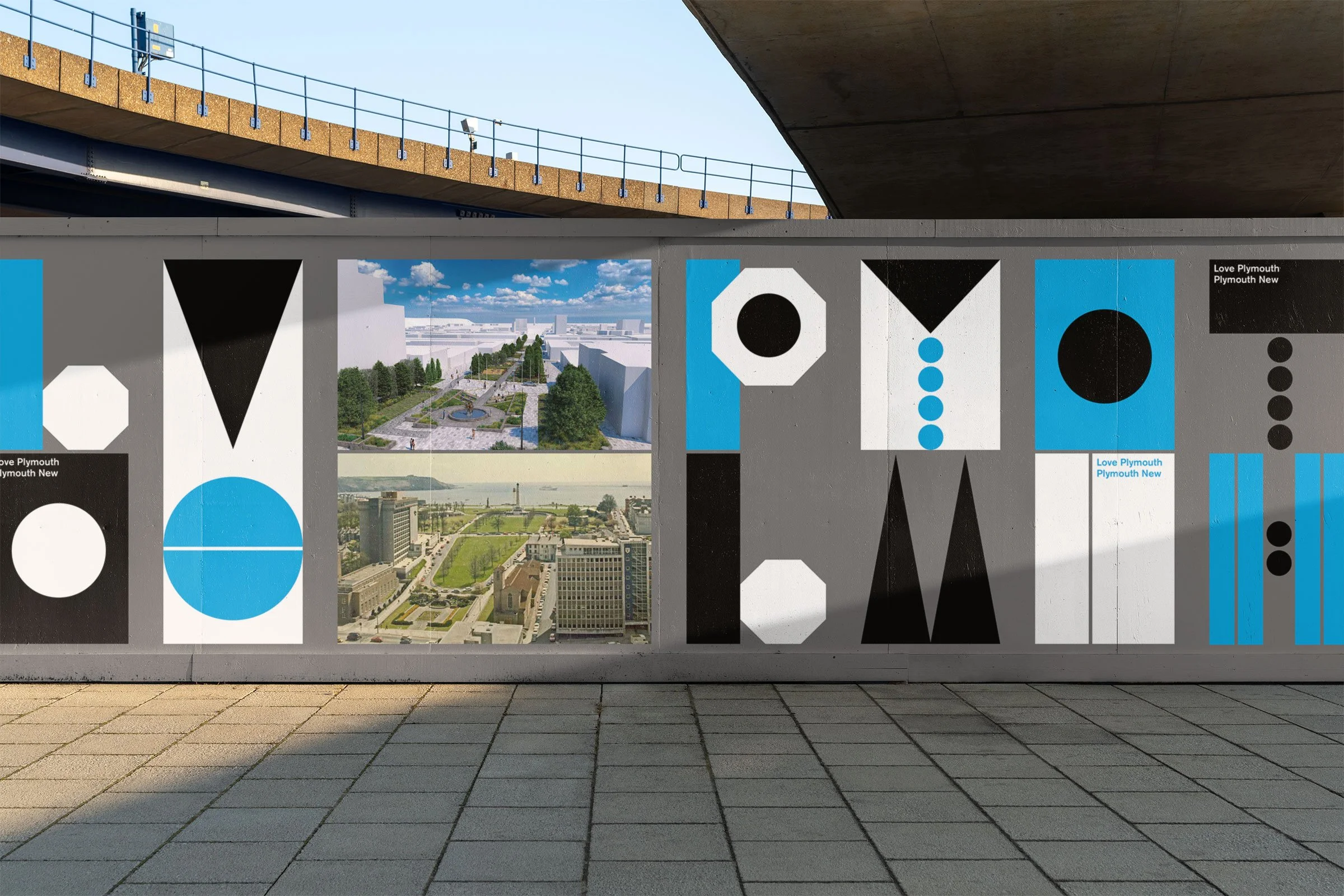 The identity draws inspiration from the post-war planning vision of Patrick Abercrombie, whose mid-20th-century plan reshaped Plymouth after the Second World War. His distinctive grid of right-angled streets, ring roads and civic spaces informed the foundation of the campaign’s graphic system.